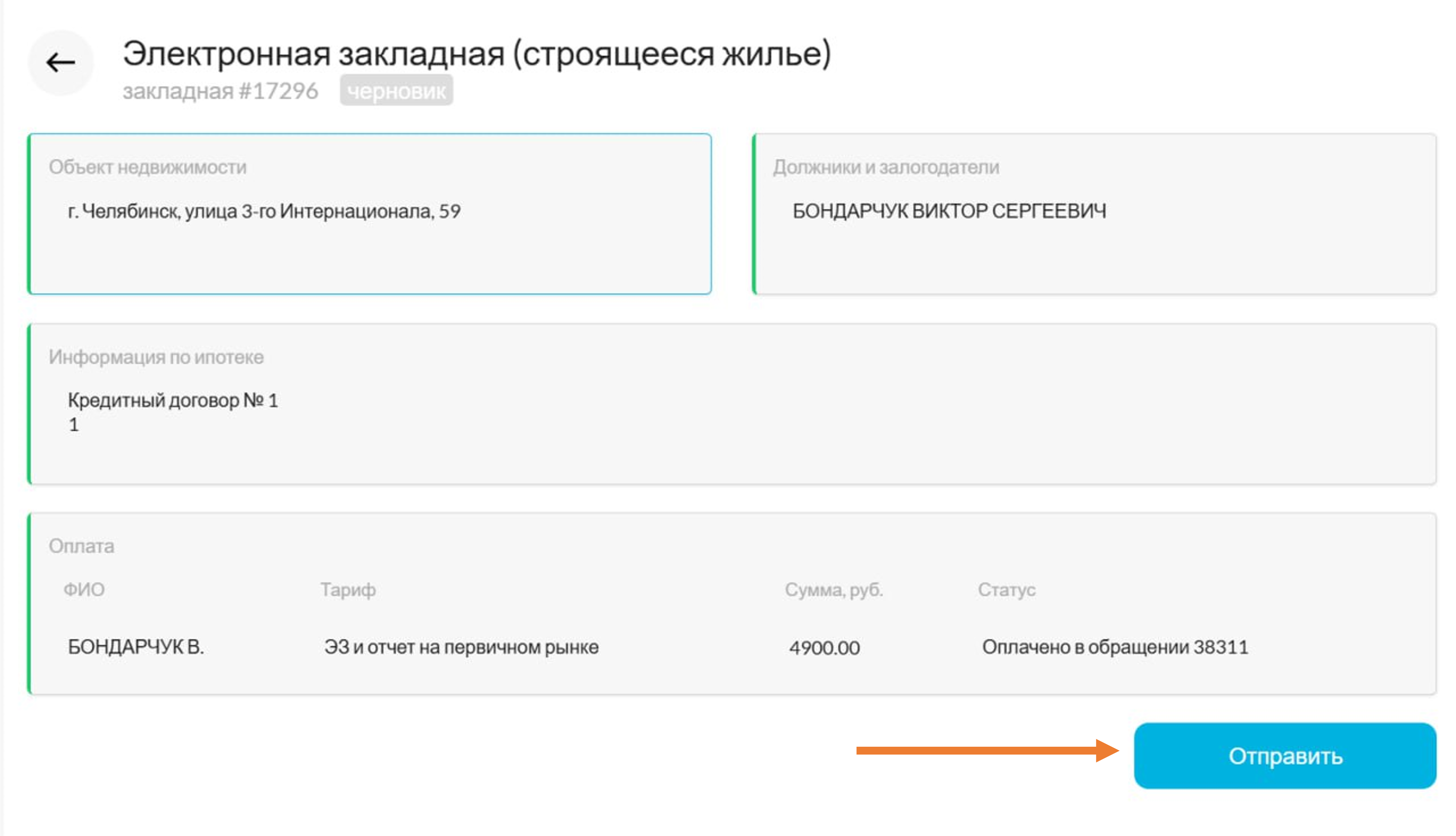 Создание черновика закладной