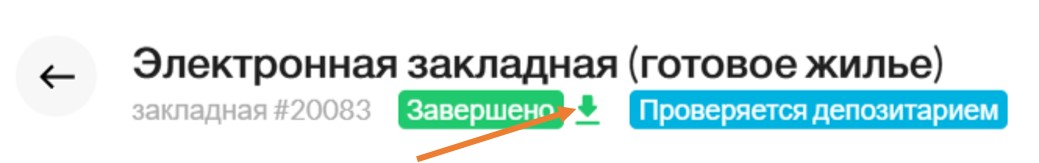 После отправки на подпись сотрудник банка может скачать PDF-файл закладной по нажатию на синюю стрелочку справа от статуса.